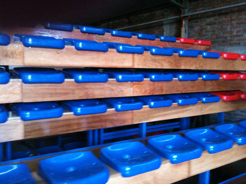 El diseño de estas gradas, da solución a los problemas de espacio y acceso que pueden surgir, maximizando él numero de plazas. Las dimensiones y forma de las gradas varian en función de las necesidades planteadas en cada momento.