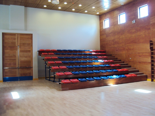 El graderío consta de una serie de módulos móviles, fijado él ultimo al suelo o al paramento vertical, por medio de tacos carriles, dependiendo del lugar final de ubicación.